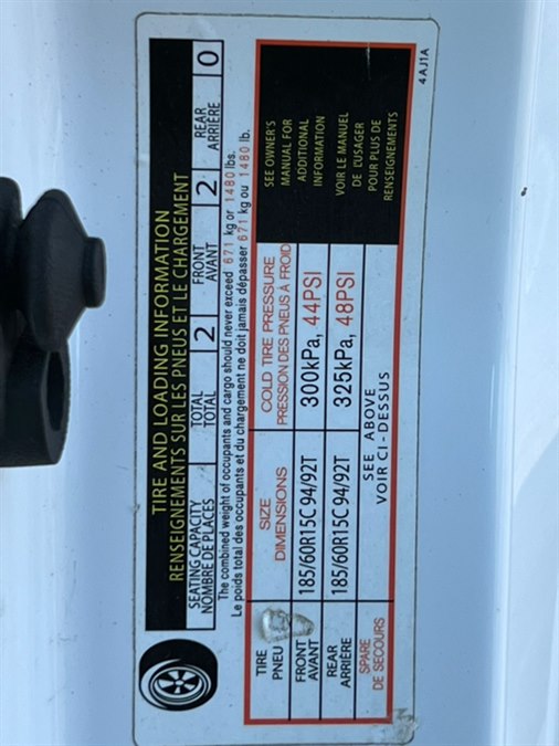 - Tires: 185/60R15 High-Load AS