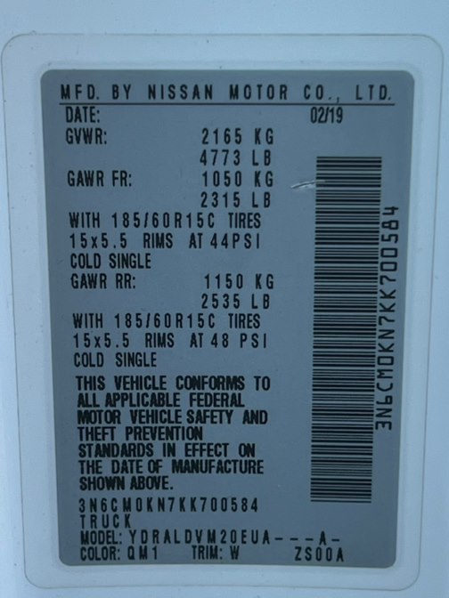 VIN: 3N6CM0KN7KK700584